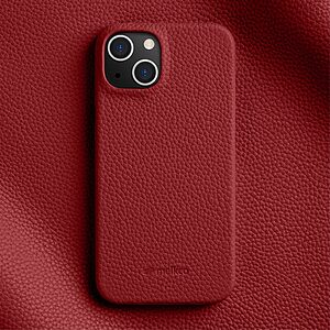 Θήκη iPhone 15 MELKCO Πλάτη Shock-Proof από Premium αυθεντικό δέρμα Genuine Cowhide κόκκινο