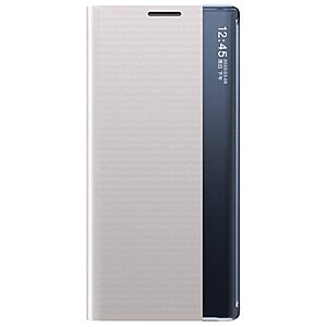 Θήκη Samsung Galaxy A73 5G OEM Half Mirror View Stand Cover με μαγνητικό κούμπωμα από συνθετικό δέρμα ασημί