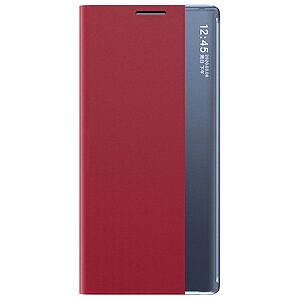 Θήκη Samsung Galaxy A32 5G OEM Half Mirror View Stand Cover με μαγνητικό κούμπωμα από συνθετικό δέρμα κόκκινο