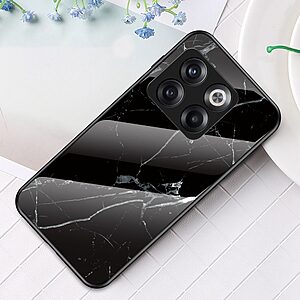 Θήκη OnePlus 10T 5G OEM σχέδιο Marble με Πλάτη Tempered Glass TPU μαύρο