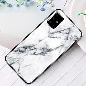 Θήκη Samsung Galaxy A51 OEM σχέδιο Marble με Πλάτη Tempered Glass TPU λευκό