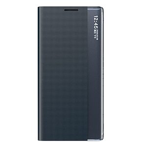 Θήκη Samsung Galaxy S22 Ultra 5G OEM Half Mirror View Stand Cover με μαγνητικό κούμπωμα από συνθετικό δέρμα μαύρο