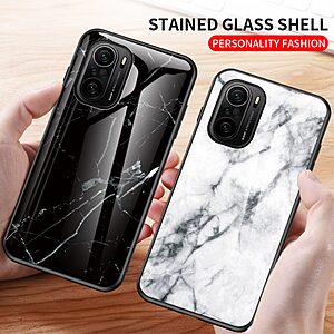 Θήκη Xiaomi Poco F3 / Mi 11i OEM σχέδιο Marble με Πλάτη Tempered Glass TPU λευκό