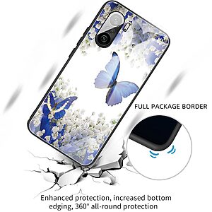 Θήκη Xiaomi Poco F3 / Mi 11i OEM σχέδιο Blue Butterfly με πλάτη από Tempered Glass και εσωτερικό TPU
