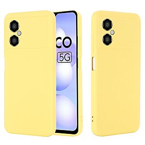 Θήκη Xiaomi Poco M4 5G OEM Soft Liquid Silicone Πλάτη σιλικόνης με κορδόνι κίτρινο