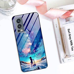 Θήκη OnePlus Nord 2 5G OEM σχέδιο Man On The Moon με πλάτη από Tempered Glass και εσωτερικό TPU