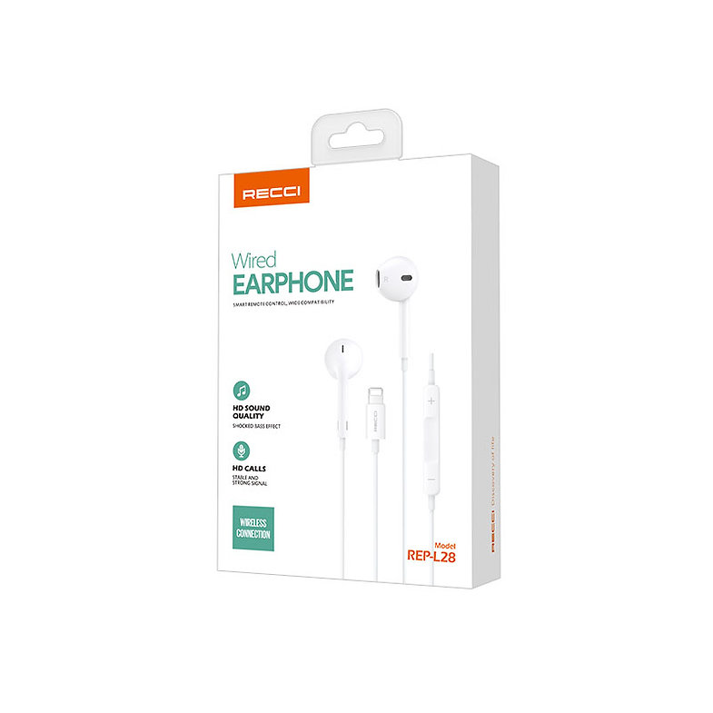 Ακουστικά RECCI REP-L28 για iPhone Earbuds Handsfree Lightning λευκό