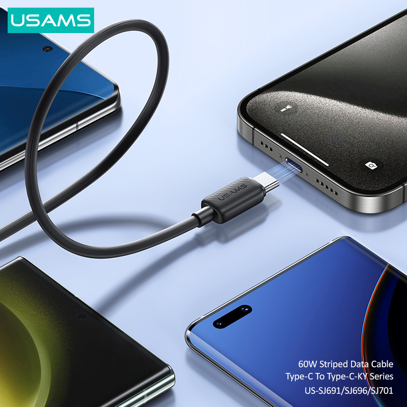 Το καλώδιο SJ701 της USAMS προσφέρει 60W υψηλή ισχύ, εξασφαλίζοντας γρήγορη και ασφαλή φόρτιση για συσκευές με θύρα Type-C. Το αντιστατικό και ανθεκτικό υλικό PVC προσφέρει μακροχρόνια αντοχή. Η ριγωτή σχεδίαση είναι απλή και όμορφη, ενώ ο πυρήνας από καθαρό χαλκό εξασφαλίζει ισχυρή αγωγιμότητα. Ο αναβαθμισμένος φορτιστής είναι βολικός στη χρήση, ενώ υποστηρίζει ταυτόχρονη φόρτιση και μεταφορά δεδομένων.