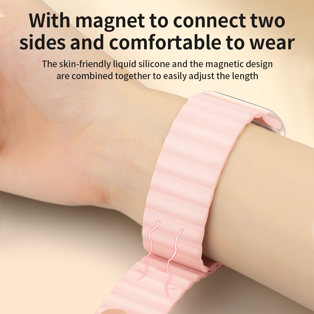 Το λουράκι για το Apple Watch της εταιρείας Kingxbar και είναι σχεδιασμένο να ταιριάζει απόλυτα στα μοντέλα Apple Watch 42/44/45mm. Κατασκευασμένο από υψηλής ποιότητας σιλικόνη, το λουράκι αυτό διακρίνεται για την ανθεκτικότητά του στο νερό και τον ιδρώτα, καθιστώντας το ιδανικό για καθημερινή χρήση. Είναι εξαιρετικά ελαφρύ και εύκαμπτο, προσφέροντας άνετη εφαρμογή στον καρπό, ενώ η απαλή του υφή δεν προκαλεί ερεθισμούς, επιτρέποντας την άνετη χρήση καθ’ όλη τη διάρκεια της ημέρας. Είναι ιδανικό για casual εμφανίσεις, αλλά και για όσους ασκούνται, χάρη στην ανθεκτικότητά του. Ένα από τα πιο ξεχωριστά χαρακτηριστικά του είναι τα μαγνητάκια που είναι τοποθετημένα κάθετα σε όλες τις επιφάνεις και εξασφαλίζουν την γρήγορη και ασφαλή τοποθέτηση στο χέρι σας, αλλά και το εύκολο ξεκούμπωμα.