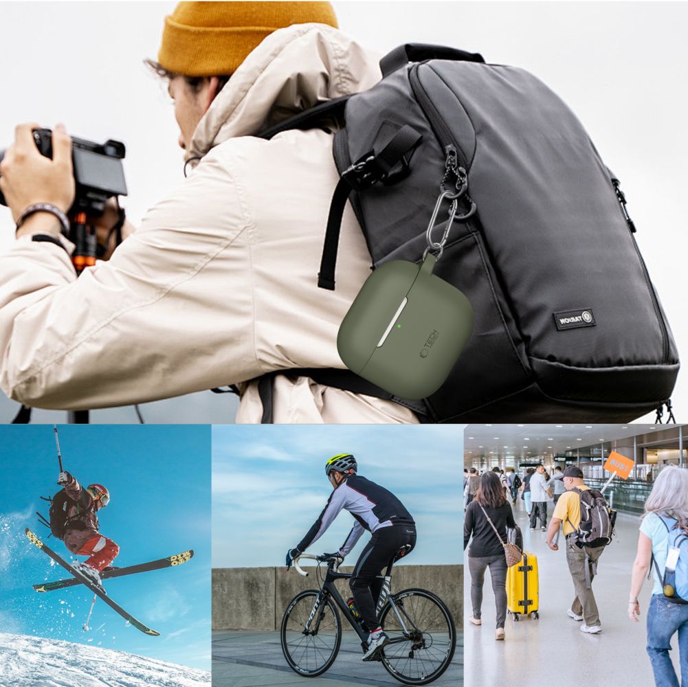 Θήκη TECH-PROTECT με γάντζο για Apple AirPods 4. Κατασκευή από premium σιλικόνη με μεταλλικό carabiner.
