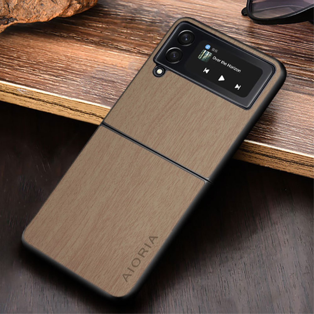 Θήκη Samsung Galaxy Z Flip4 5G AIORIA Aioria Πλάτη με υφή δερματίνης και σχέδιο ξύλο από σκληρό πλαστικό χακί