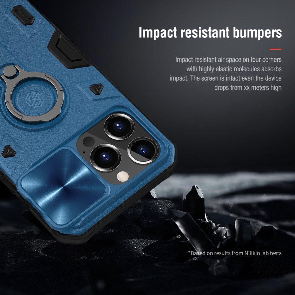 Θήκη iPhone 13 Pro Max NiLLkin Camshield Armor Series Πλάτη με προστασία για την κάμερα, Kickstand και Βάση στήριξης από σκλήρό Premium TPU μπλε