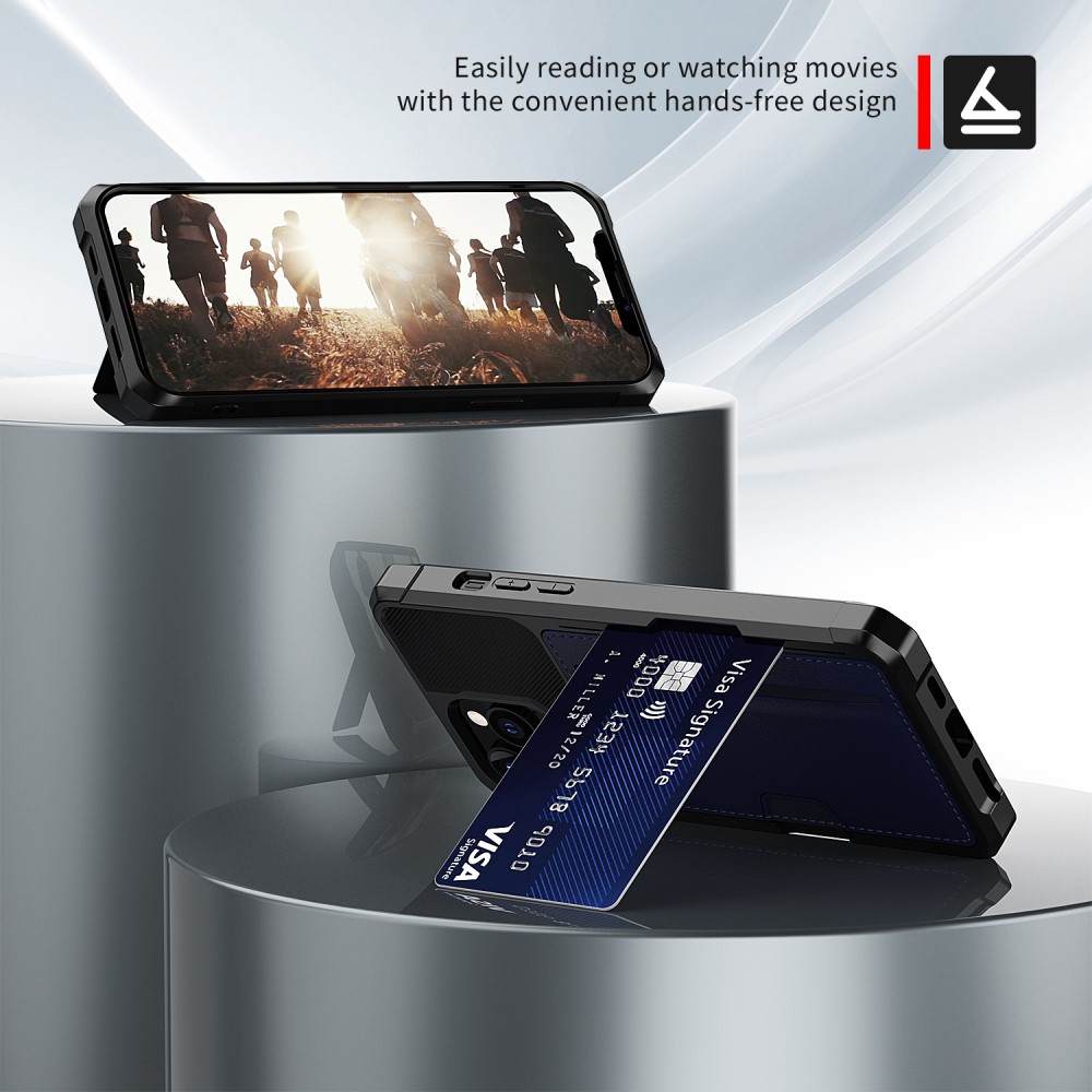 Θήκη iPhone 13 Pro OEM Πλάτη από συνθετικό δέρμα με υποδοχή κάρτας και αντικραδασμικό Carbon Premium TPU μπλε