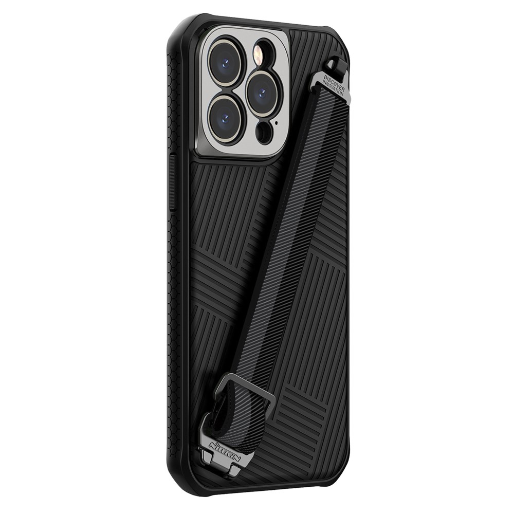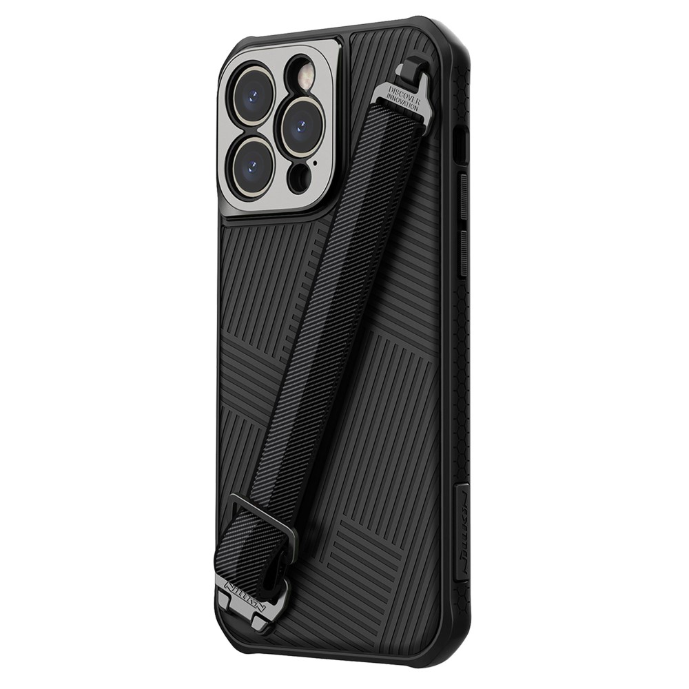 Θήκη iPhone 14 Pro Max NiLLkin Strap Case Series Πλάτη με Ειδική Λαβή για κράτημα από σκλήρό Premium TPU μαύρο
