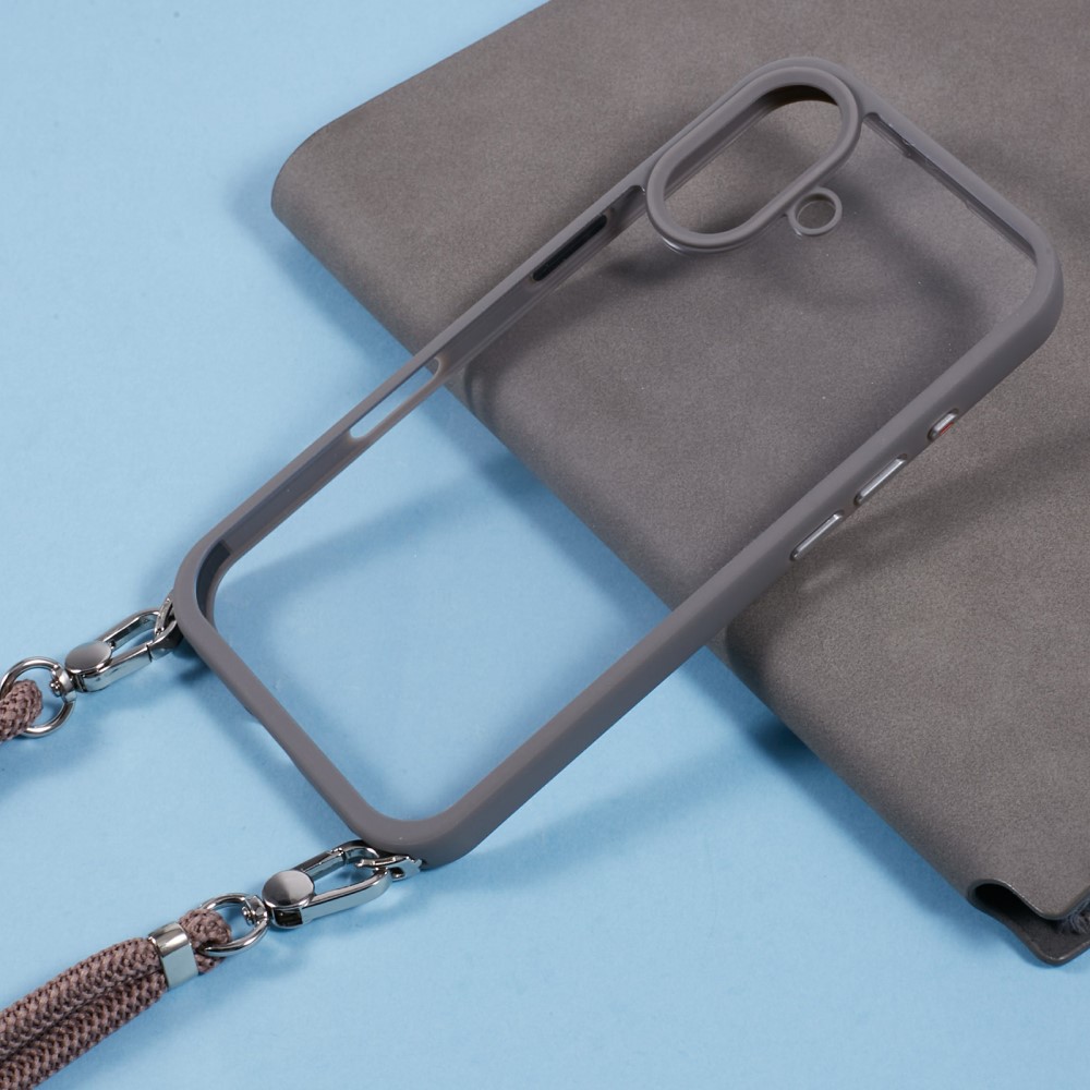 Θήκη iPhone 16 Plus OEM Soft Silicone Sockproof v4 πλάτη με κορδόνι από αντικραδασμικό TPU γκρι