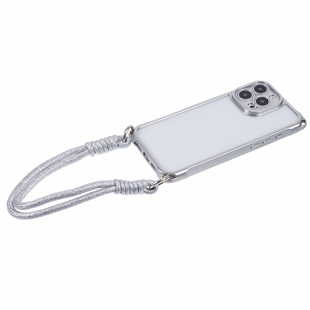 Θήκη iPhone 16 Pro Max Mad Mask Premium Ανθεκτικότητα με ενισχυμένες γωνίες και λουράκι καρπού, προσφέροντας προστασία από πτώσεις και εύκολη μεταφορά Πλάτη TPU ασημί