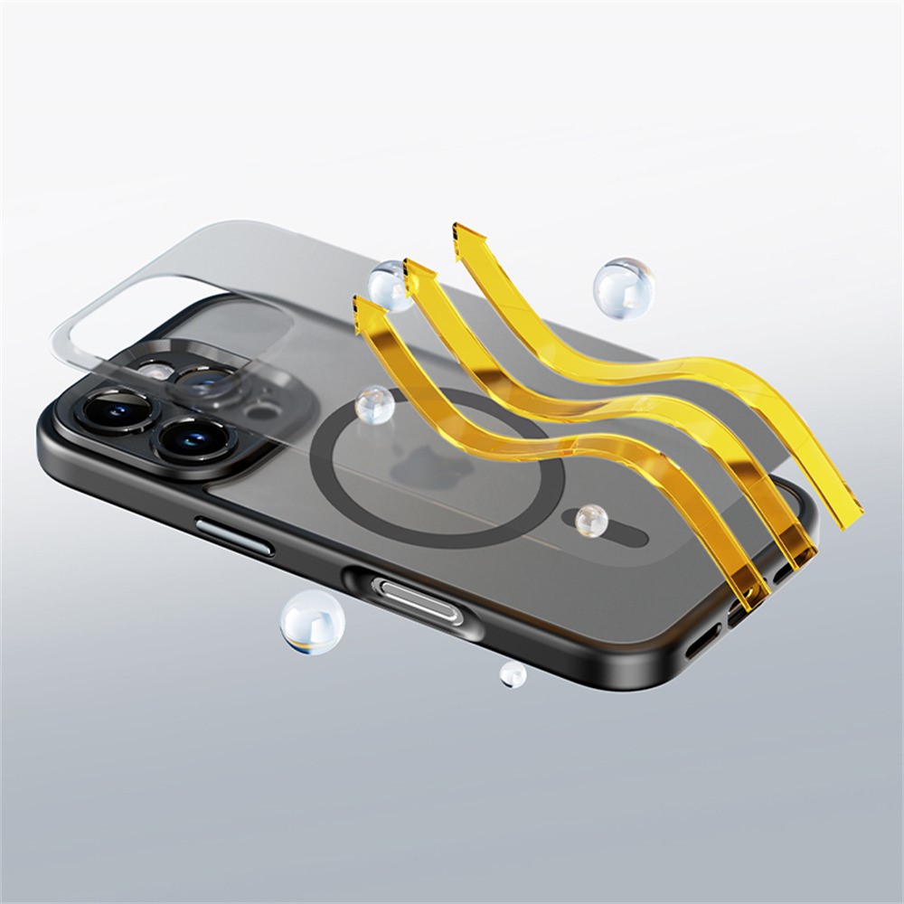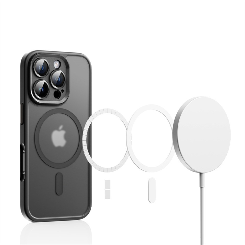 Θήκη iPhone 16 Pro ROCK Silicone Sockproof frame συμβατό με MagSafe φορτιστή Transparent Πλάτη TPU μαύρο