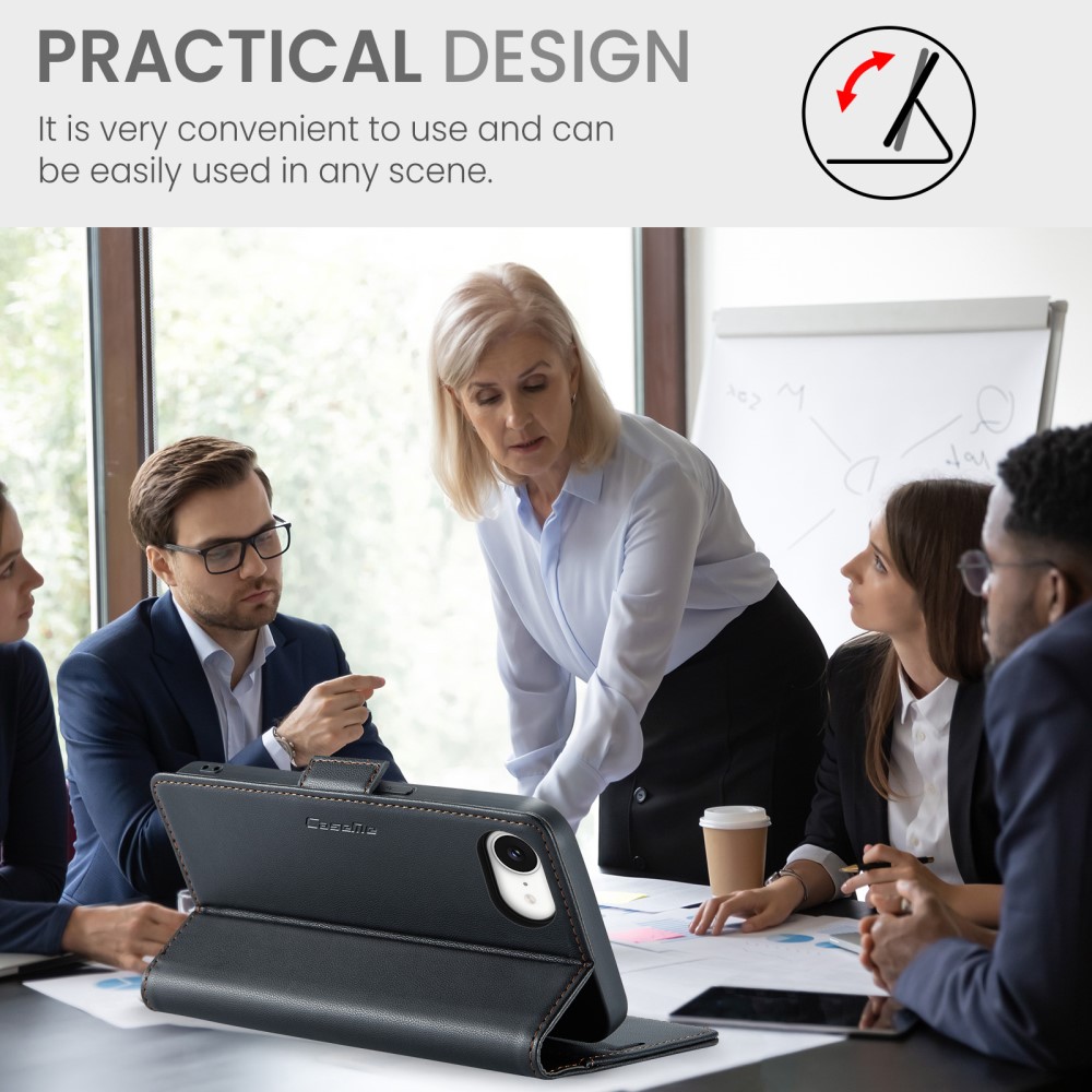 Θήκη iPhone 16e CASEME 023 Series Πορτοφόλι με βάση στήριξης, υποδοχές καρτών και μαγνητικό κούμπωμα από συνθετικό δέρμα και TPU μαύρο