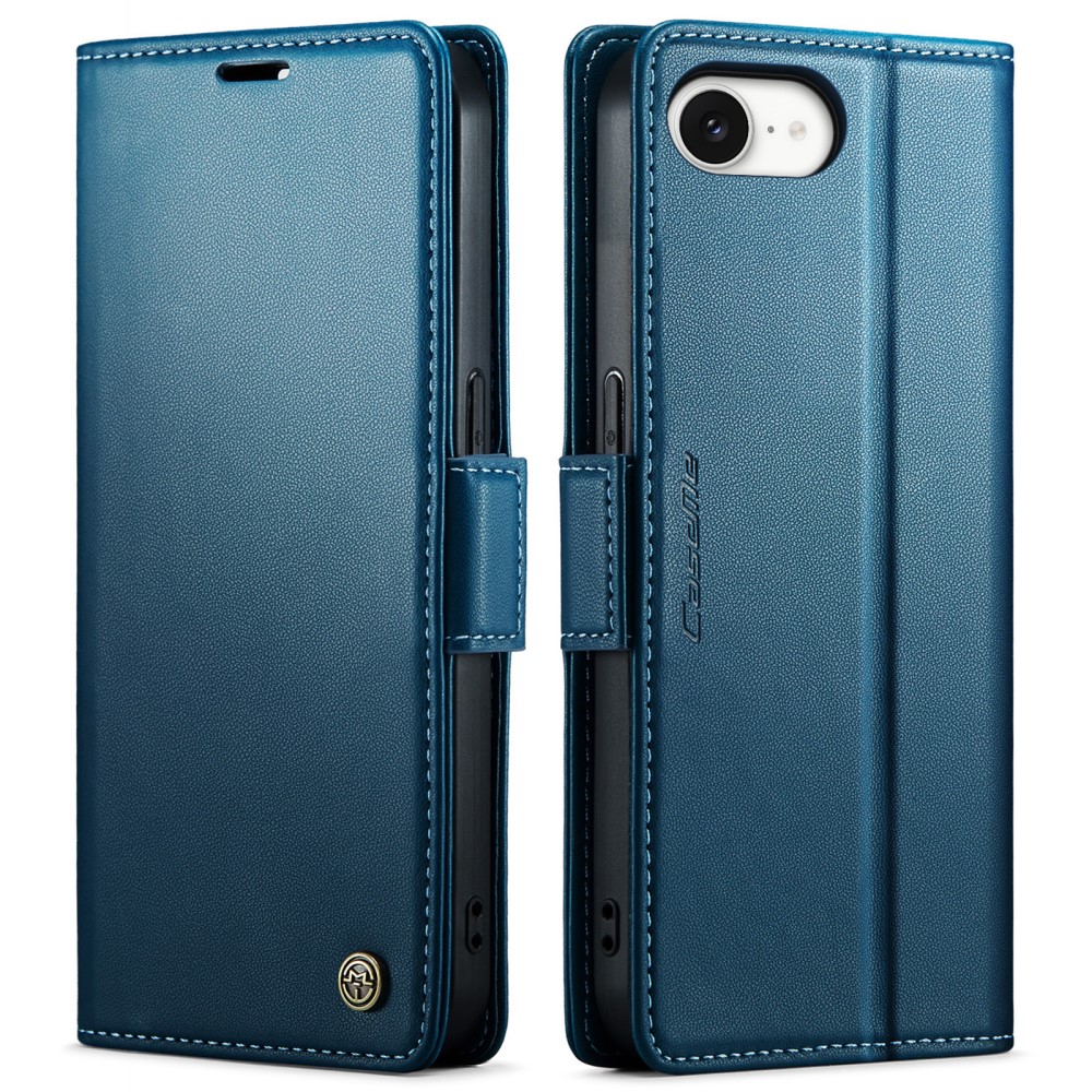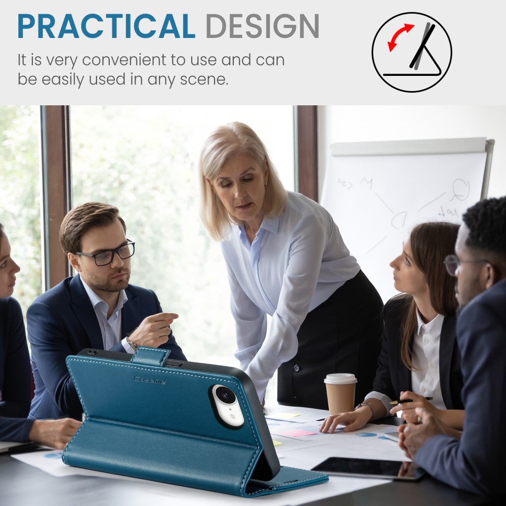 Θήκη iPhone 16e CASEME 023 Series Πορτοφόλι με βάση στήριξης, υποδοχές καρτών και μαγνητικό κούμπωμα από συνθετικό δέρμα και TPU μπλε