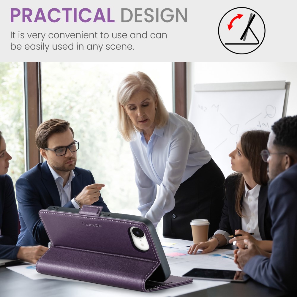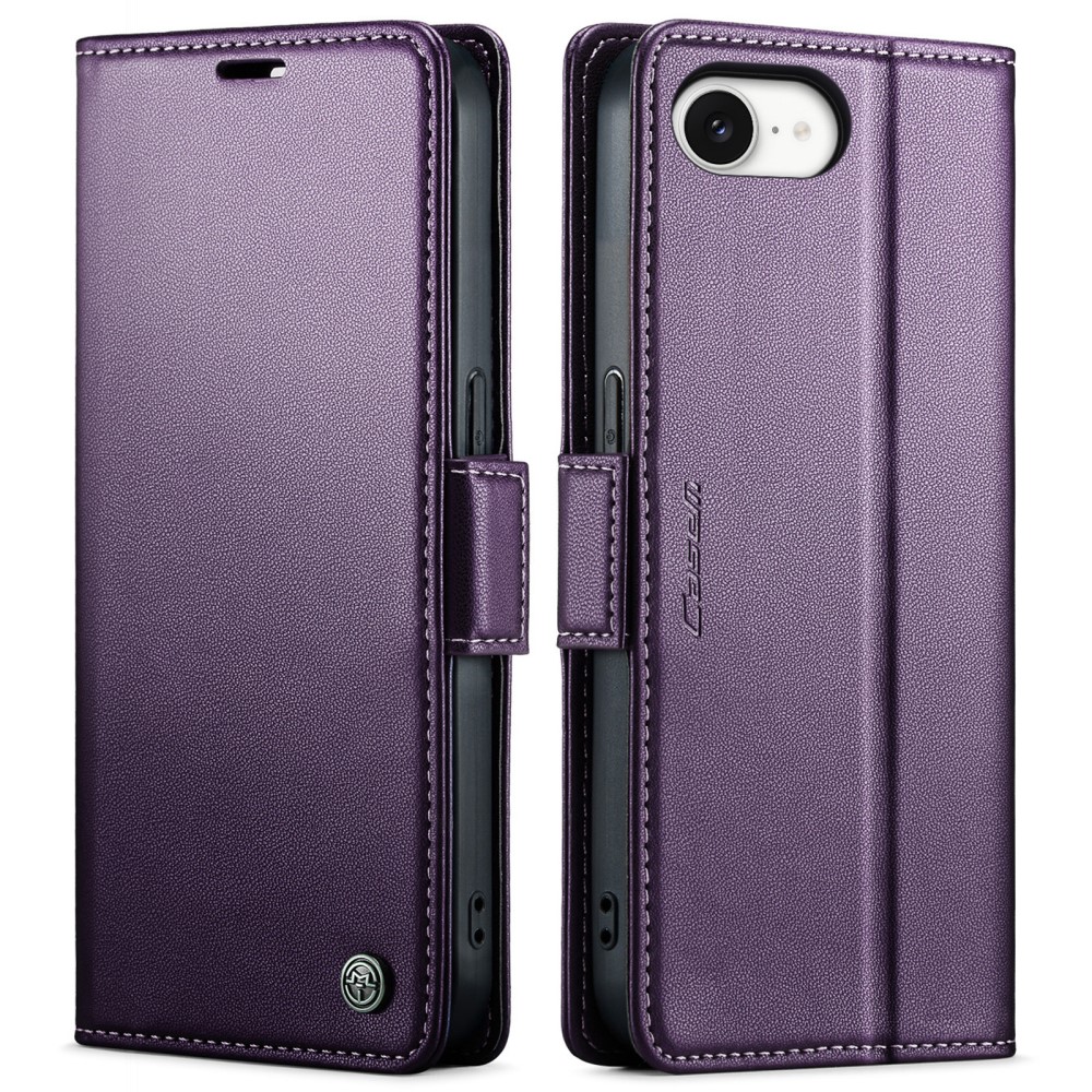 Θήκη iPhone 16e CASEME 023 Series Πορτοφόλι με βάση στήριξης, υποδοχές καρτών και μαγνητικό κούμπωμα από συνθετικό δέρμα και TPU μωβ