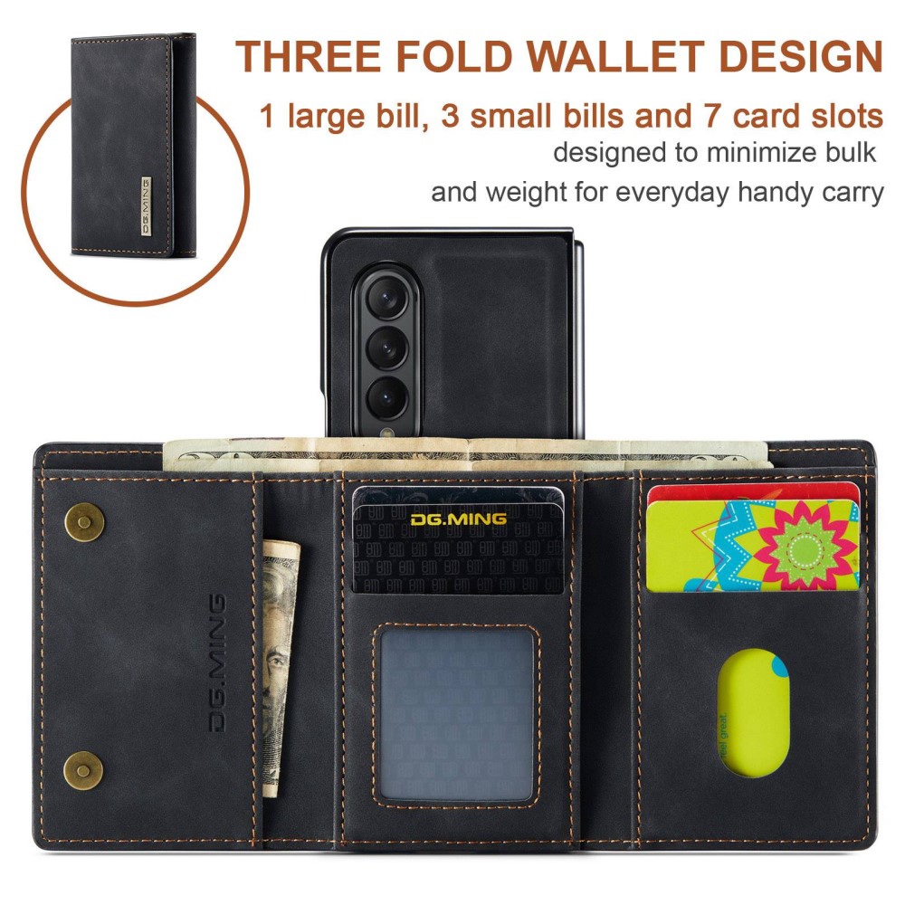 Θήκη Samsung Galaxy Z Fold4 5G DG.MING M1 Series Αποσπώμενο Πορτοφόλι με βάση στήριξης, υποδοχές καρτών και χρημάτων με μαγνητικό κούμπωμα από συνθετικό δέρμα και TPU μαύρο