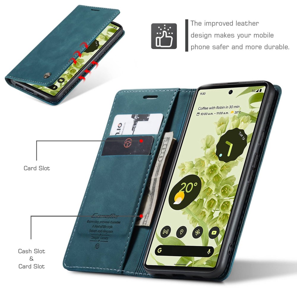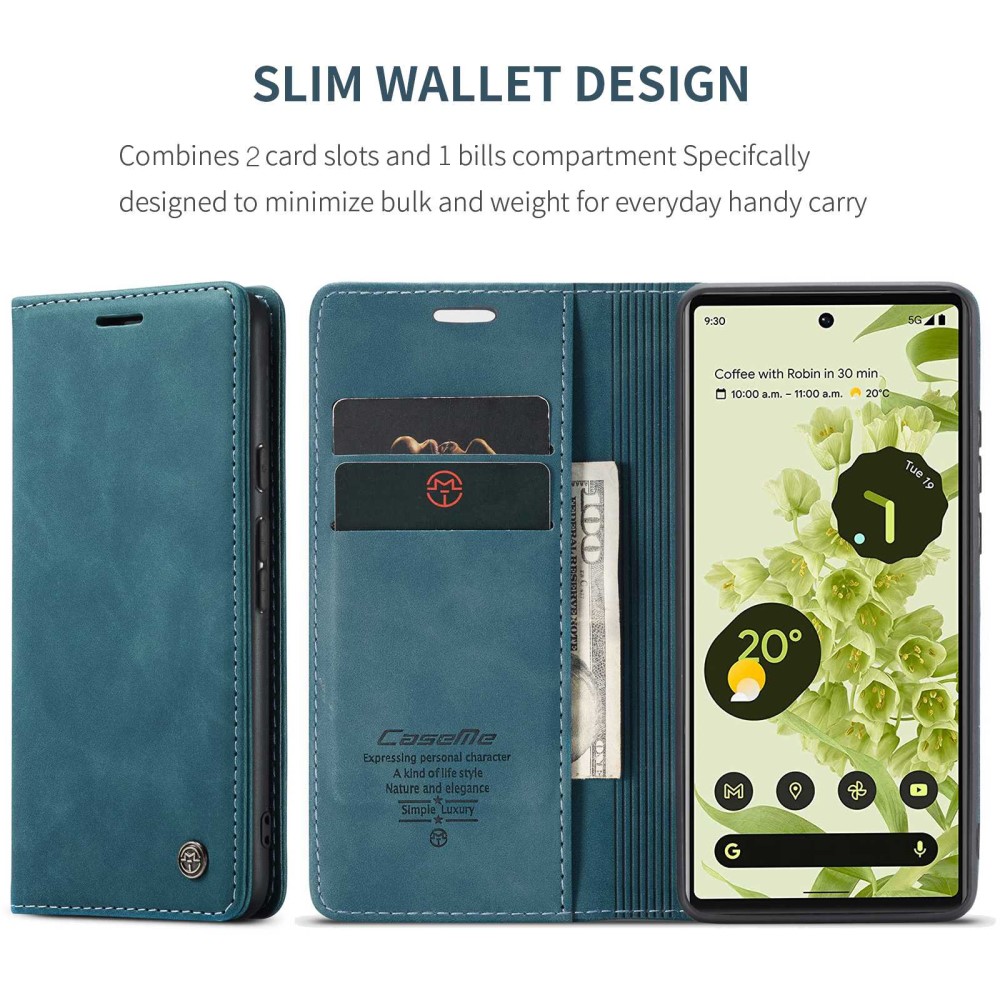 Θήκη Google Pixel 6 5G CaseMe 013 Series Πορτοφόλι με βάση στήριξης, υποδοχές καρτών και μαγνητικό κούμπωμα από συνθετικό δέρμα και TPU πράσινο