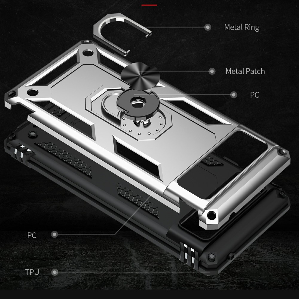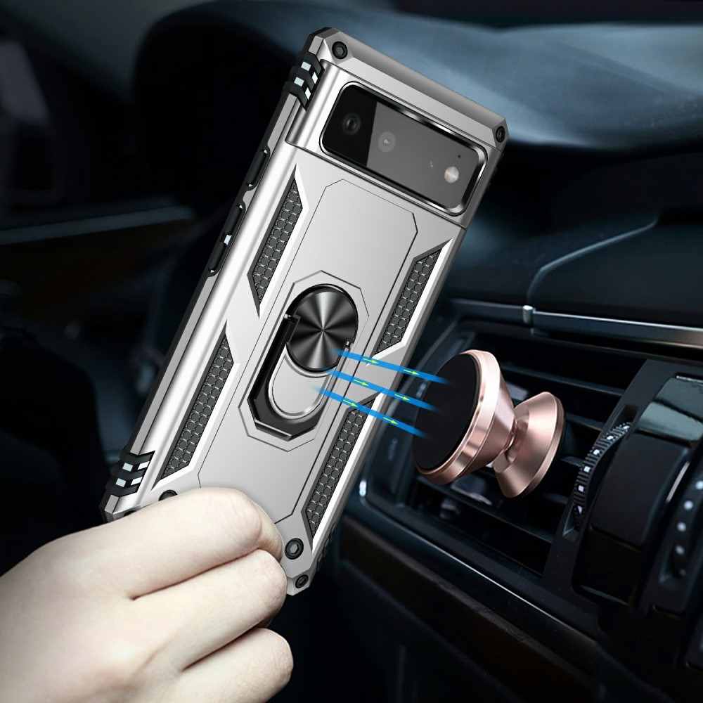 Θήκη Google Pixel 6 5G OEM Πλάτη Armor V12 με Μαγνητικό δαχτυλίδι και Βάση στήριξης TPU ασημί