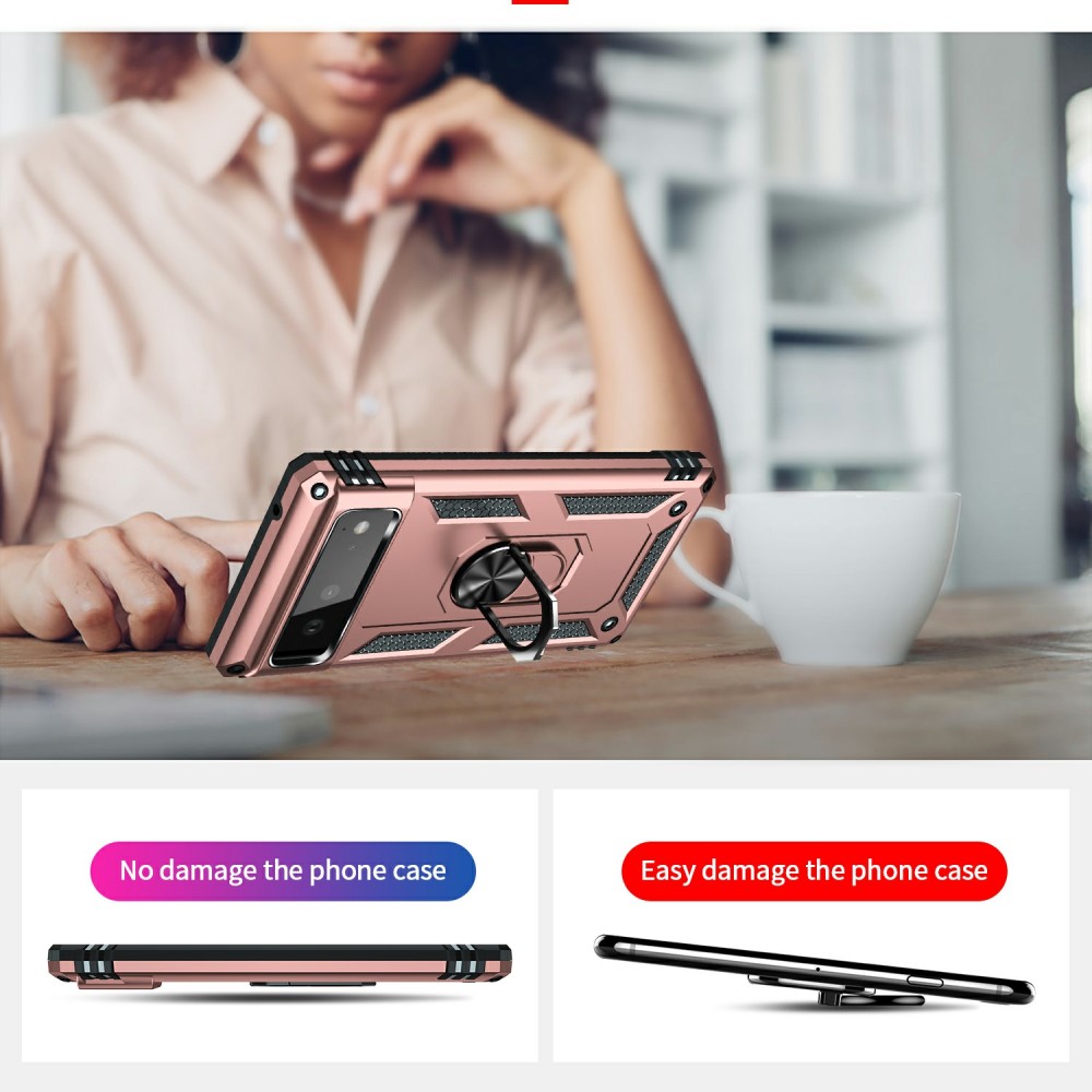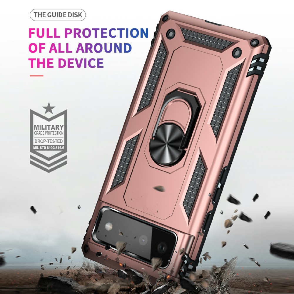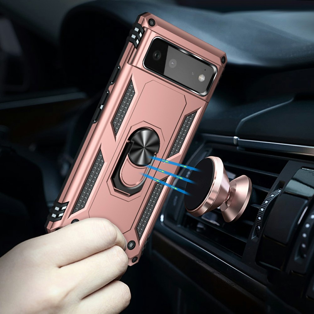 Θήκη Google Pixel 6 5G OEM Πλάτη Armor V12 με Μαγνητικό δαχτυλίδι και Βάση στήριξης TPU ροζ χρυσό
