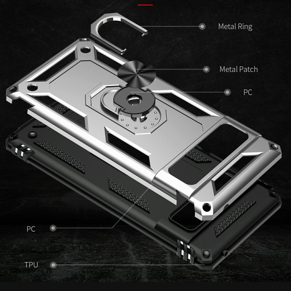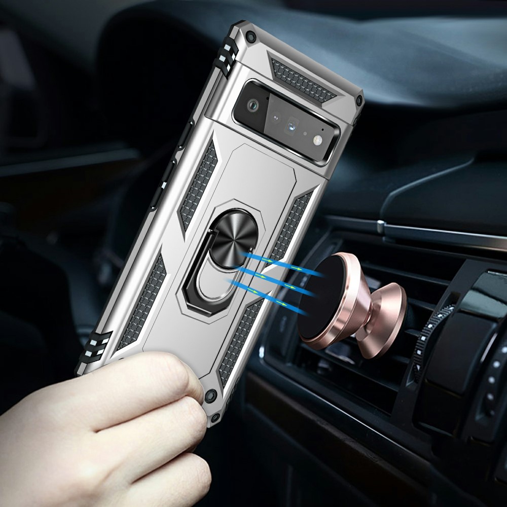 Θήκη Google Pixel 6 Pro 5G OEM Πλάτη Armor V12 με Μαγνητικό δαχτυλίδι και Βάση στήριξης TPU ασημί