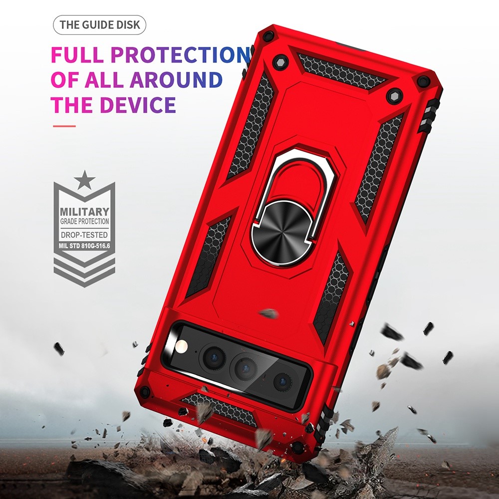 Θήκη Google Pixel 7 Pro 5G OEM Πλάτη Armor V12 με Μαγνητικό δαχτυλίδι και Βάση στήριξης TPU κόκκινο