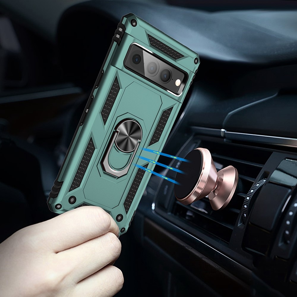 Θήκη Google Pixel 7 Pro 5G OEM Πλάτη Armor V12 με Μαγνητικό δαχτυλίδι και Βάση στήριξης TPU πράσινο