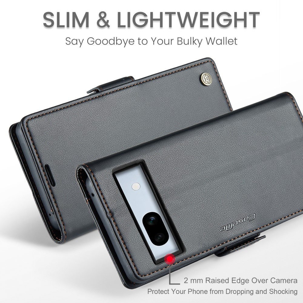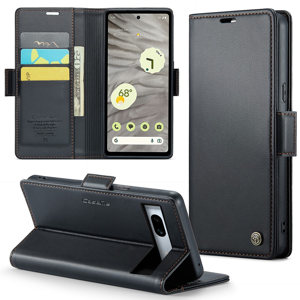 Θήκη Google Pixel 7A CaseMe 023 Series Πορτοφόλι με βάση στήριξης, υποδοχές καρτών και μαγνητικό κούμπωμα από συνθετικό δέρμα και TPU μαύρο
