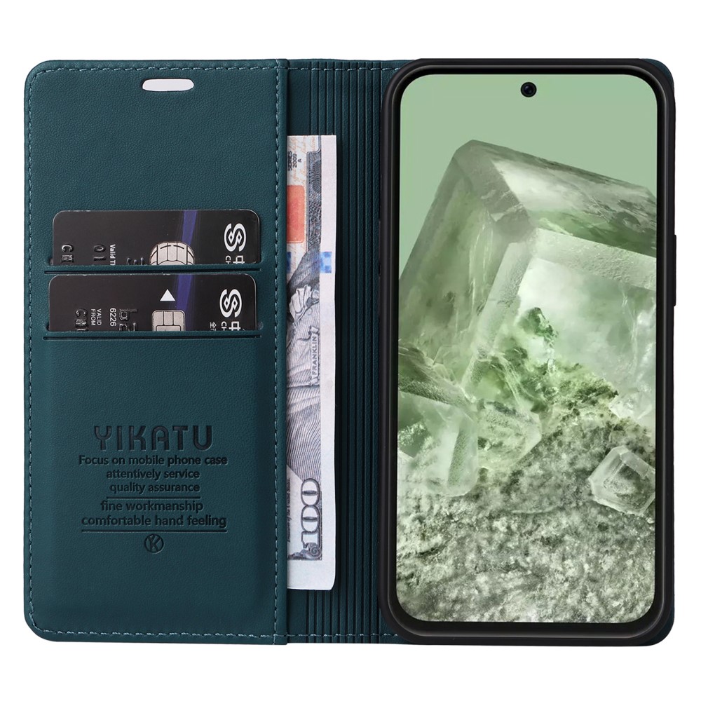 Θήκη Google Pixel 8a 5G YIKATU Folio Series με βάση στήριξης, υποδοχή καρτών και μαγνητικό κούμπωμα Flip Wallet από συνθετικό δέρμα και TPU πράσινο