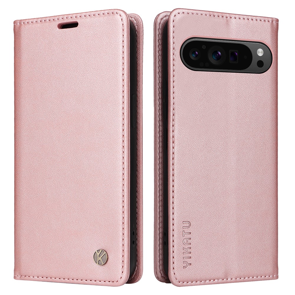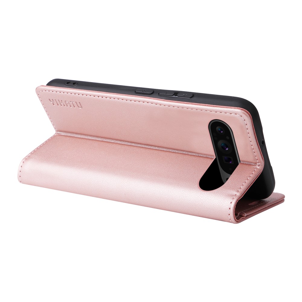 Θήκη Google Pixel 9 Pro XL 5G YIKATU Folio Series με βάση στήριξης, υποδοχή καρτών και μαγνητικό κούμπωμα Flip Wallet από συνθετικό δέρμα και TPU ροζ χρυσό