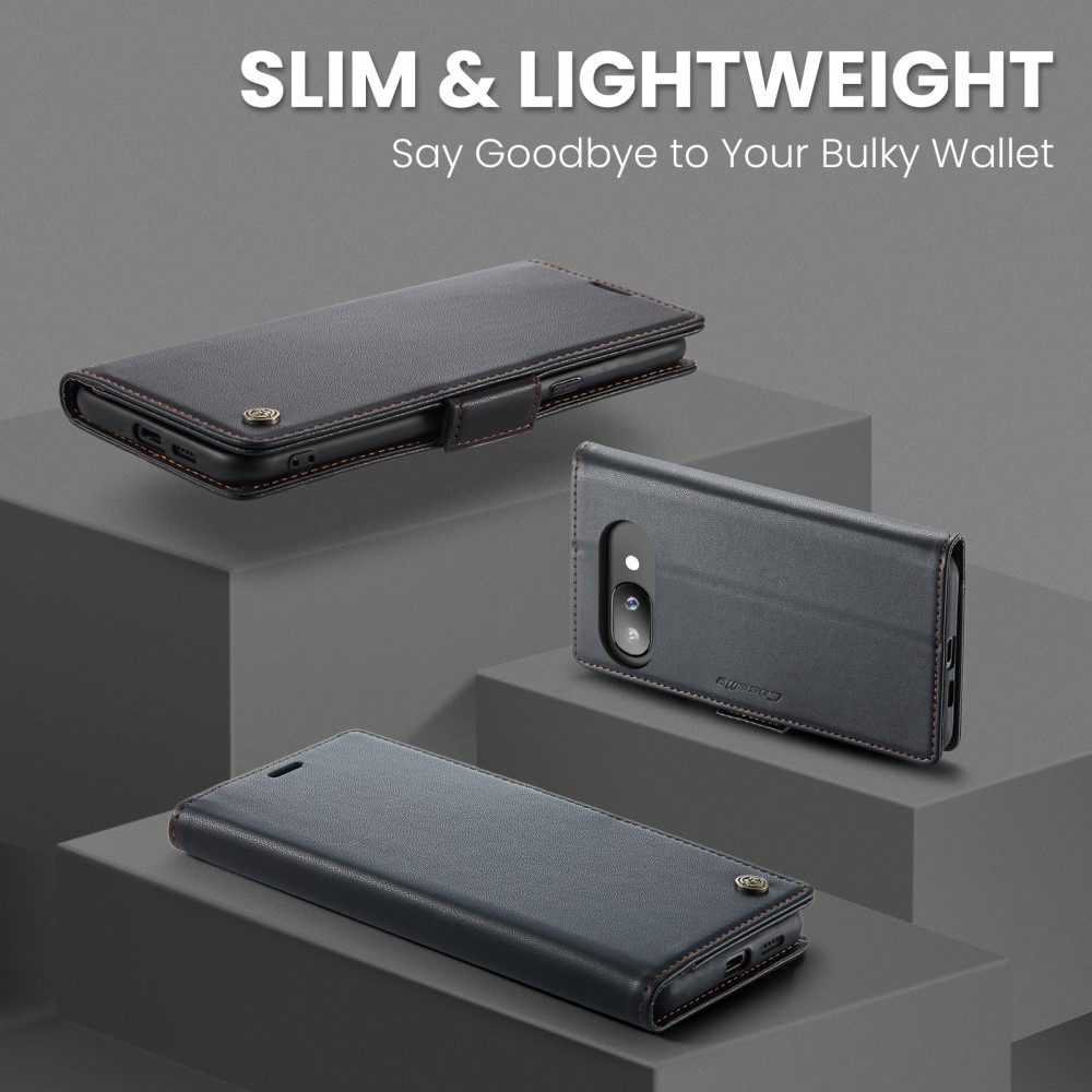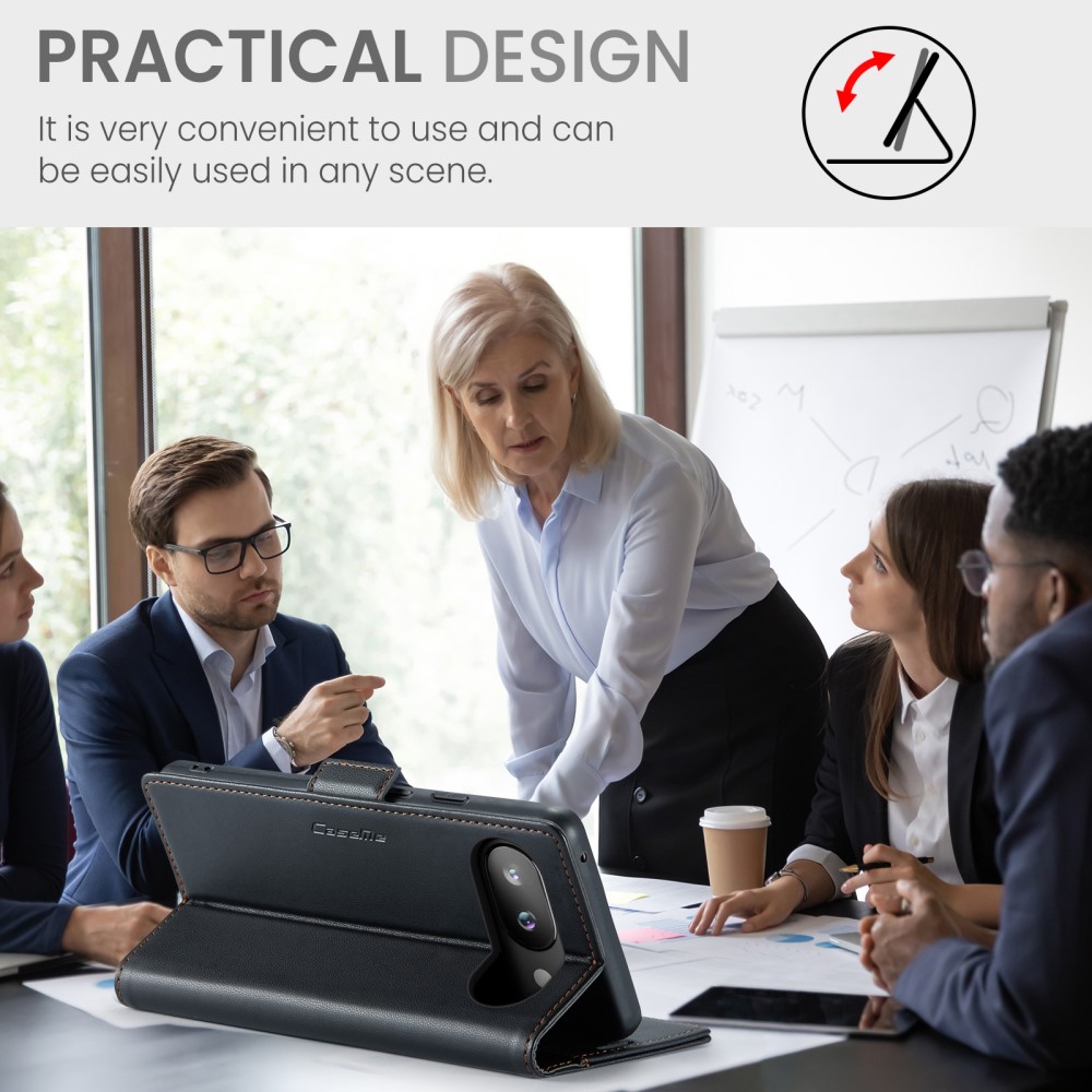 Θήκη Google Pixel 9a 5G CASEME 023 Series Πορτοφόλι με βάση στήριξης, υποδοχές καρτών και μαγνητικό κούμπωμα από συνθετικό δέρμα και TPU μαύρο