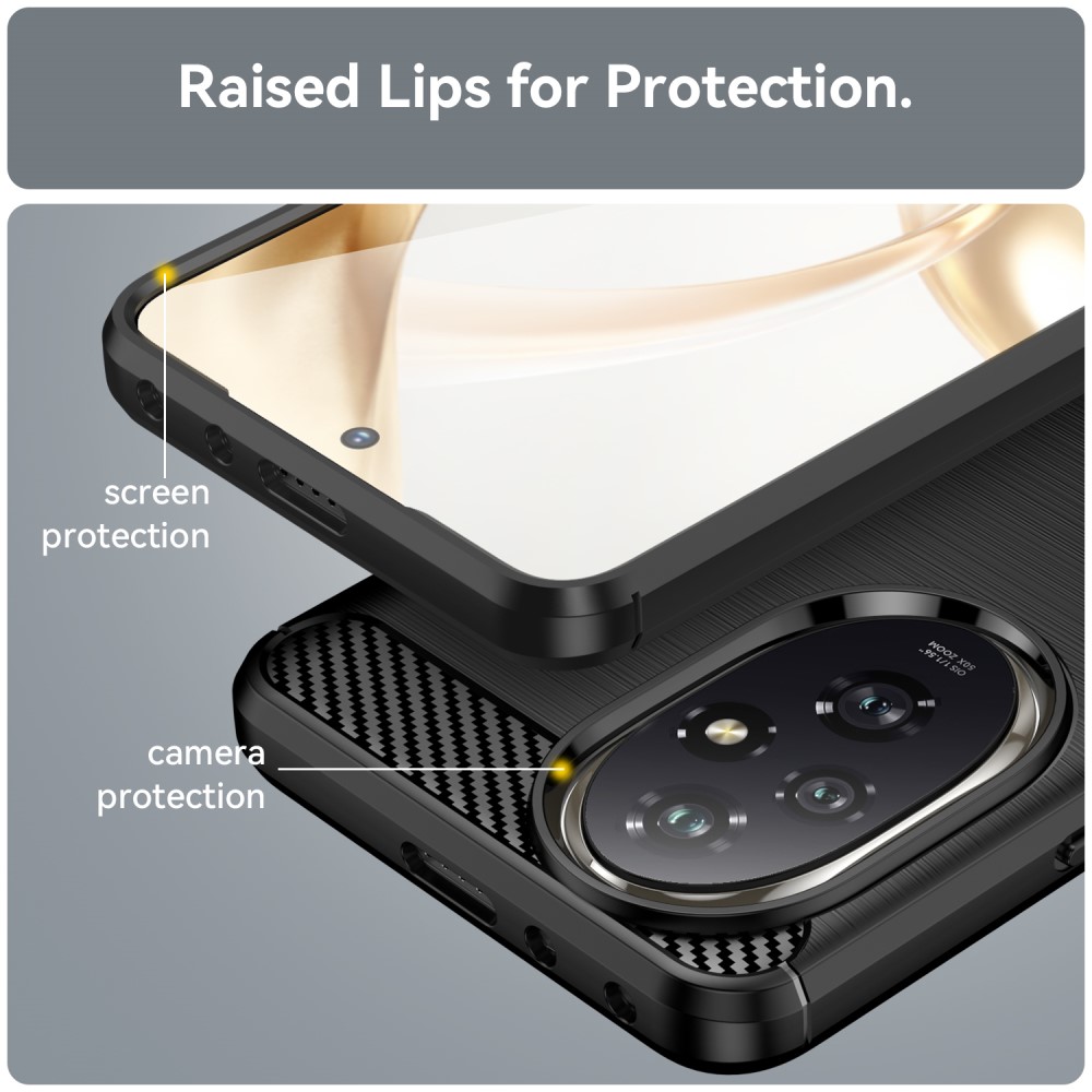 Η συγκεκριμένη θήκη σε μαύρο χρώμα και σχέδιο Carbon fiber (ανθρακόνημα) για το Honor 200 Pro 5G στην πίσω όψη προσδίδει το μέγιστο σε ομορφιά / αισθητική της θήκης και σε κάνει να μην θέλεις να την αποχωριστείς. Επιπλέον είναι αντιολισθητική και δεν λερώνει εύκολα.