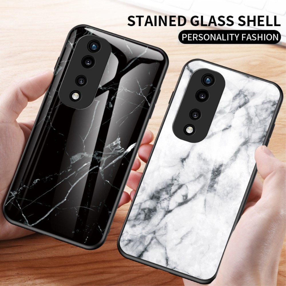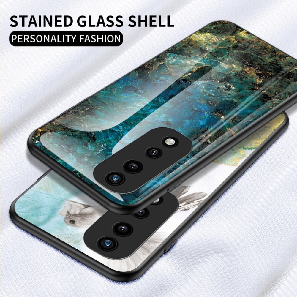 Θήκη Honor 70 5G OEM σχέδιο Marble με Πλάτη Tempered Glass TPU σμαραγδί