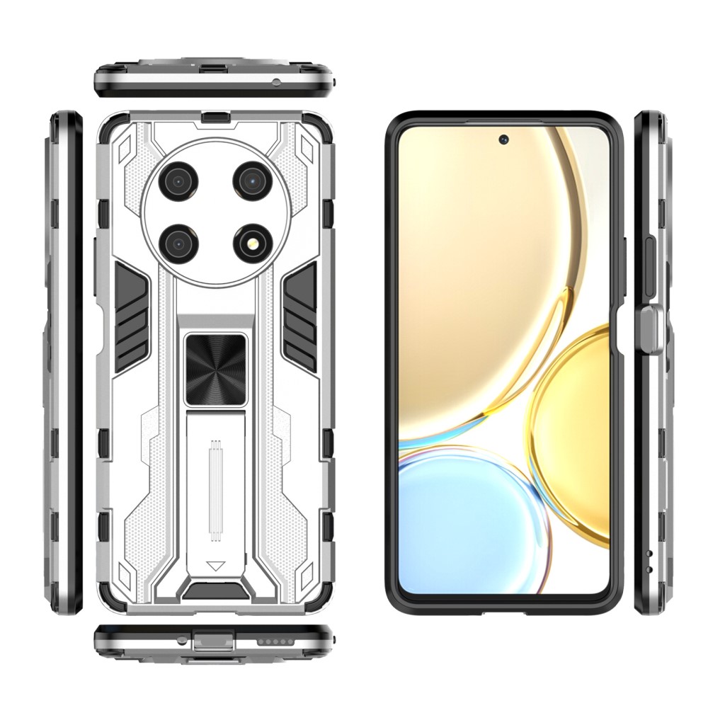 Θήκη Honor Magic4 Lite 5G Mad Mask Πλάτη Shockproof Armor με Μαγνητικό δαχτυλίδι και ποδαράκι Βάση στήριξης TPU ασημί