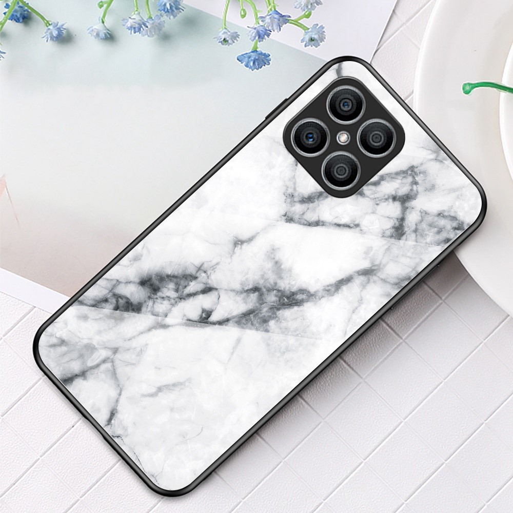 Θήκη Honor X8 OEM σχέδιο Marble με Πλάτη Tempered Glass TPU λευκό