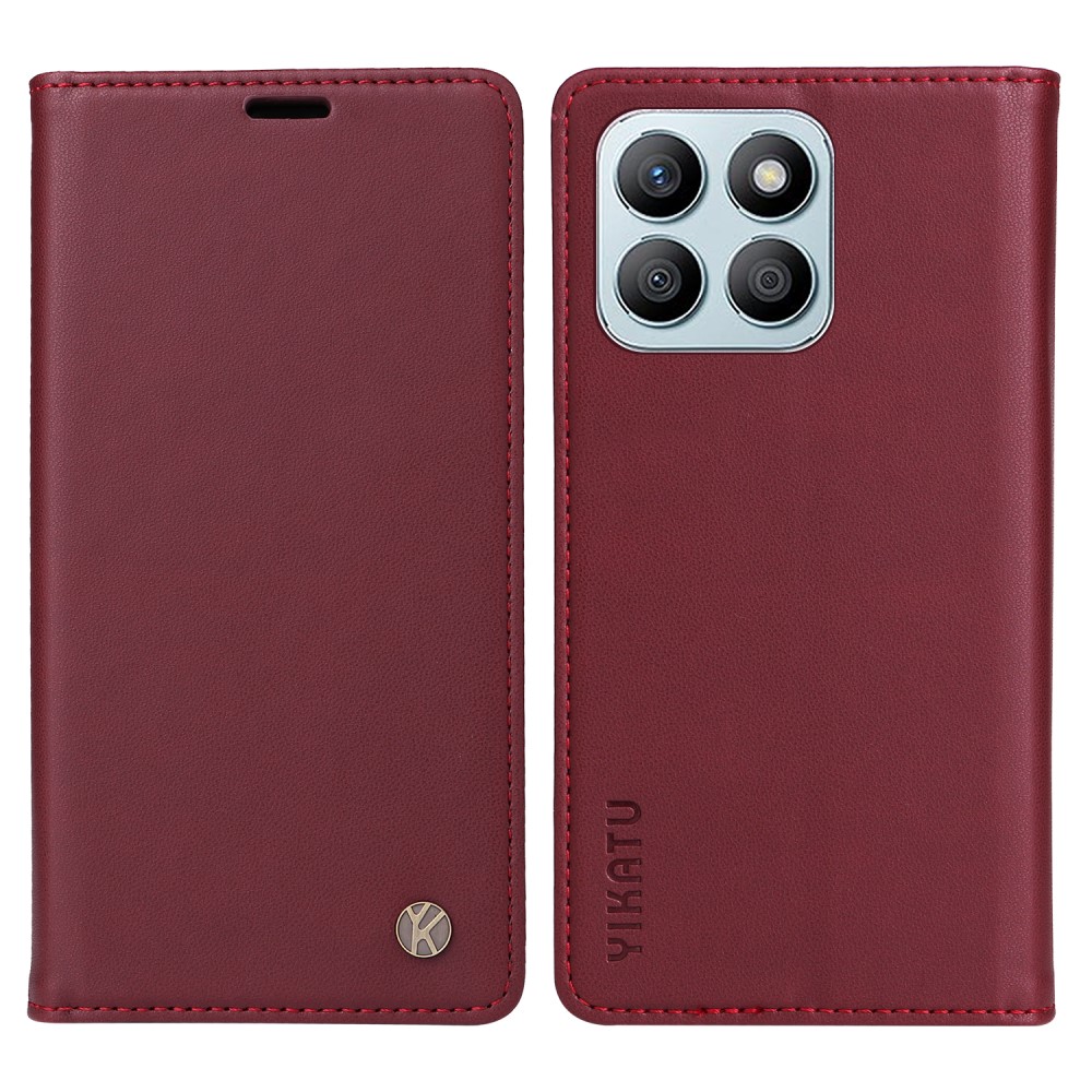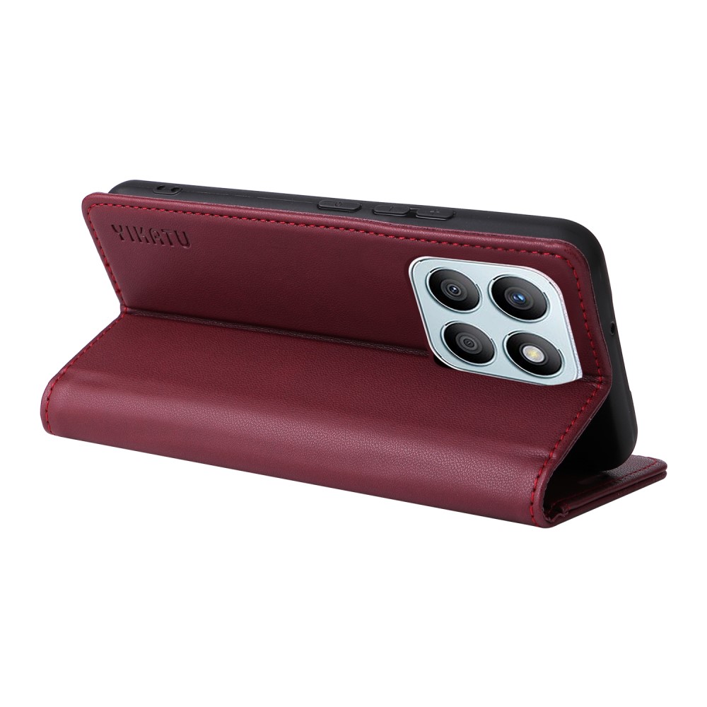 Θήκη Honor X8b YIKATU Folio Series με βάση στήριξης, υποδοχή καρτών και μαγνητικό κούμπωμα Flip Wallet από συνθετικό δέρμα και TPU κόκκινο σκούρο