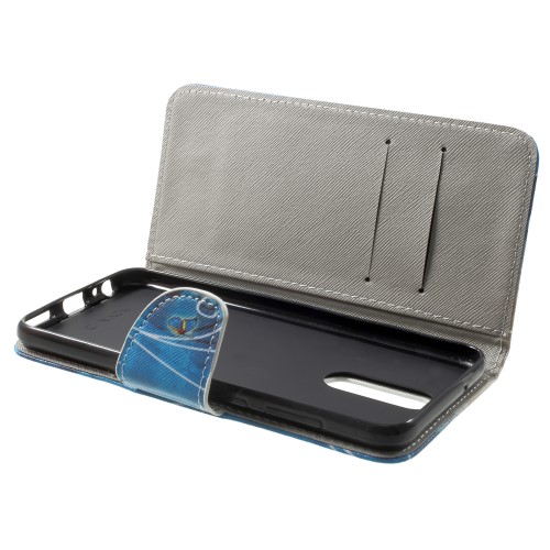 Θήκη HUAWEI Mate 10 Lite OEM σχέδιο Blue Butterfly με βάση στήριξης, υποδοχές καρτών και μαγνητικό κούμπωμα Flip Wallet δερματίνη