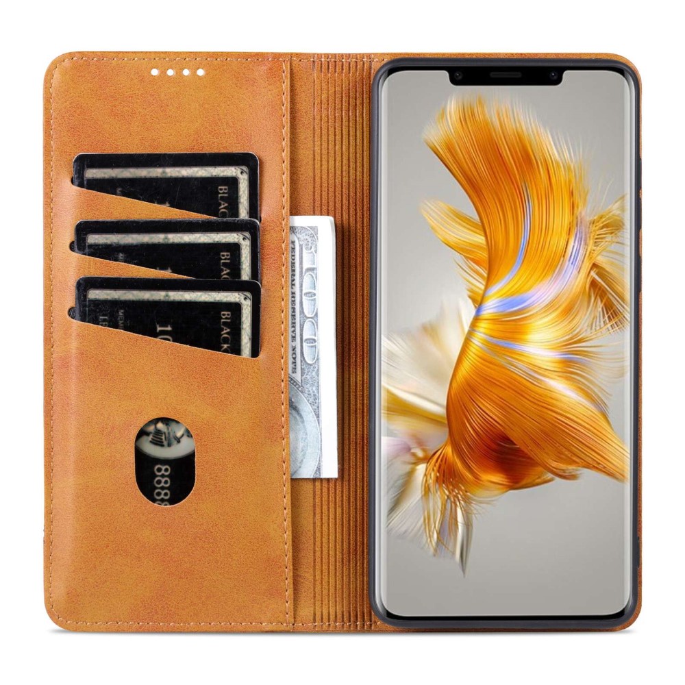 Θήκη Huawei Mate 50 Pro AZNS Litchi Retro V4 Texture Leather με βάση στήριξης, υποδοχές καρτών και μαγνητικό κούμπωμα καφέ