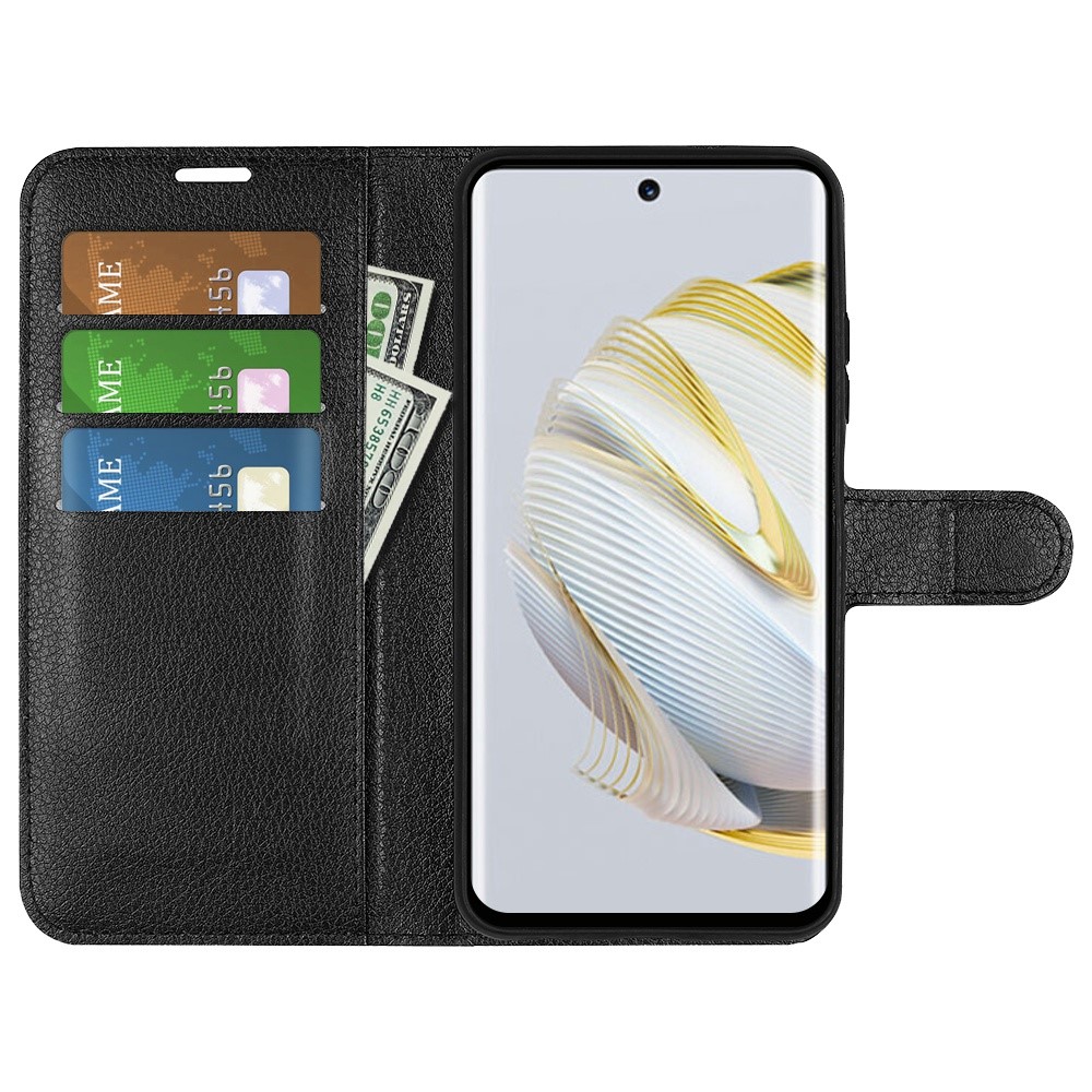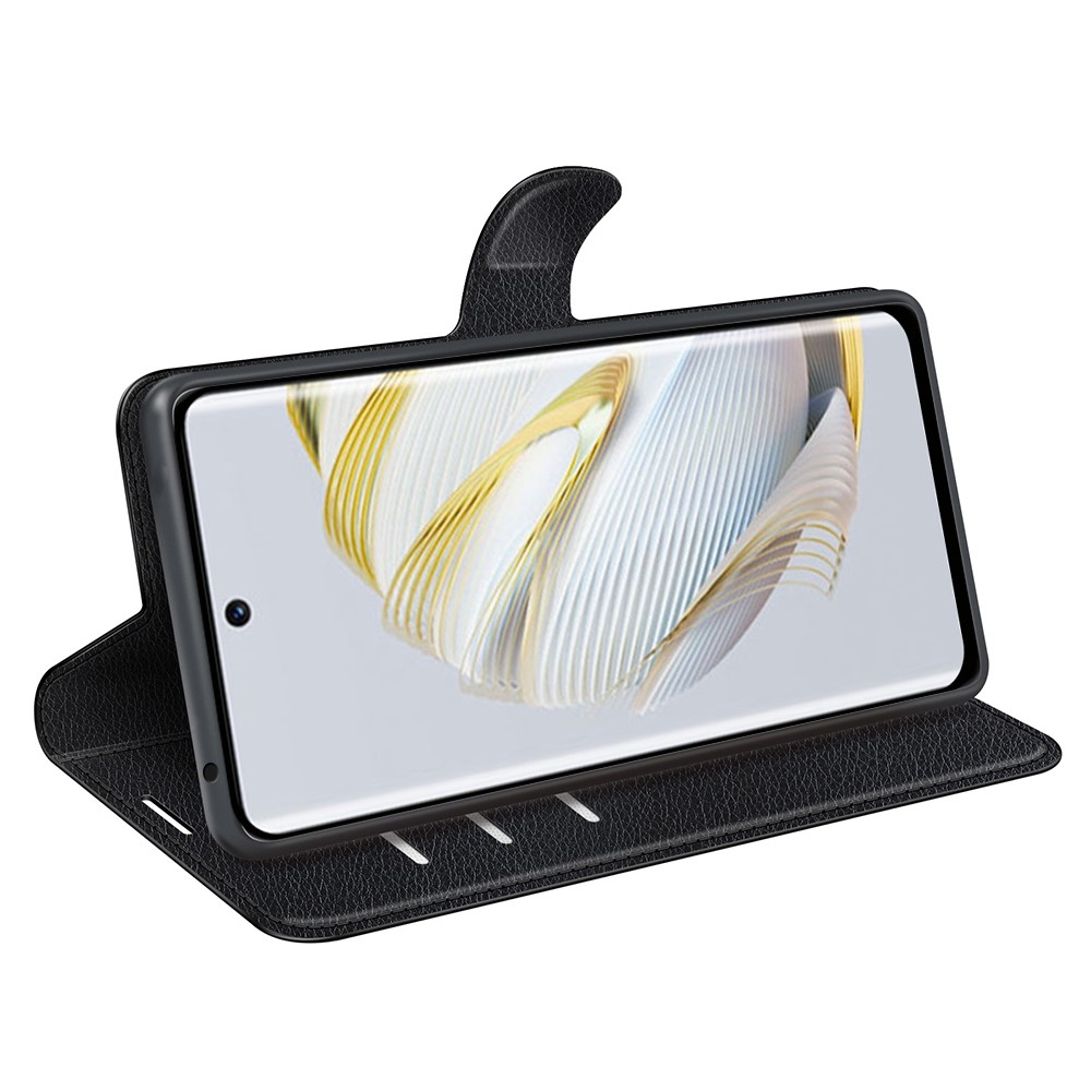 Θήκη Huawei Nova 10 Pro OEM Litchi Skin Leather με βάση στήριξης, υποδοχές καρτών και μαγνητικό κούμπωμα μαύρο