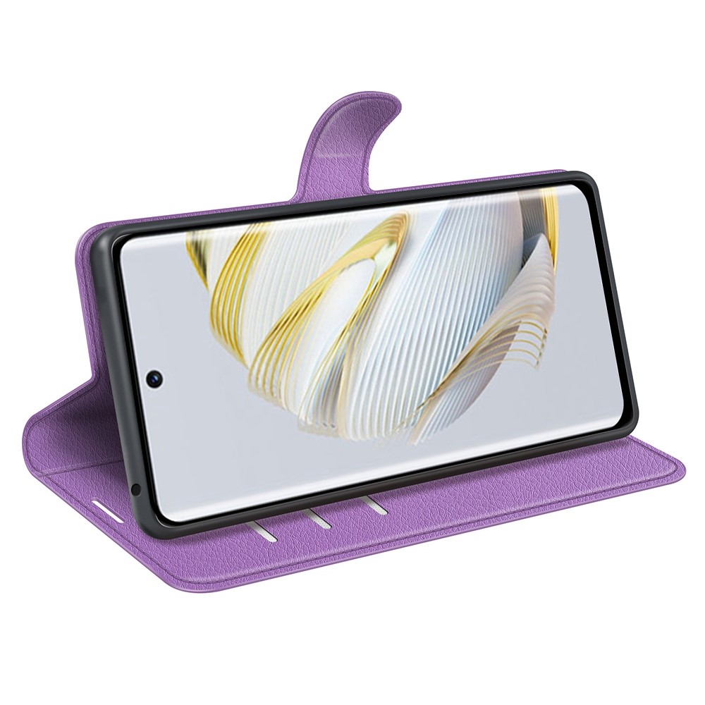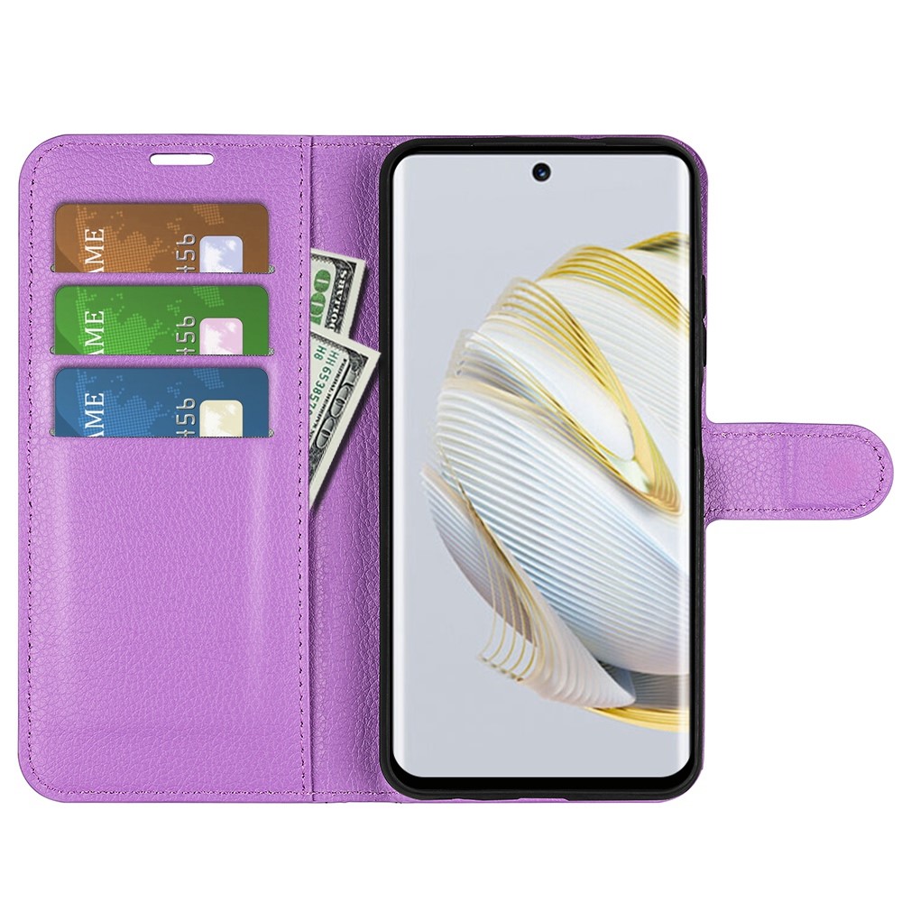 Θήκη Huawei Nova 10 Pro OEM Litchi Skin Leather με βάση στήριξης, υποδοχές καρτών και μαγνητικό κούμπωμα μωβ