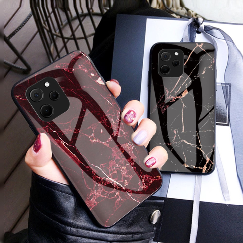 Θήκη Huawei Nova Y61 OEM σχέδιο Marble με Πλάτη Tempered Glass TPU λευκό