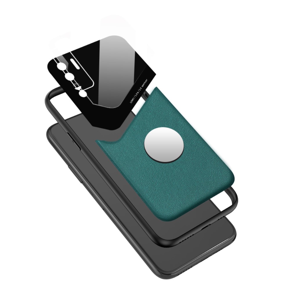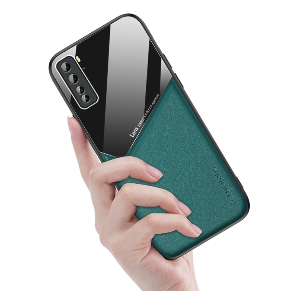 Θήκη Huawei P40 Lite 5G OEM Magnetic Glass Series πλάτη με ενσωματωμένο μαγνήτη και υποστήριξη μαγνητικής βάσης από συνθετικό δέρμα TPU πράσινο