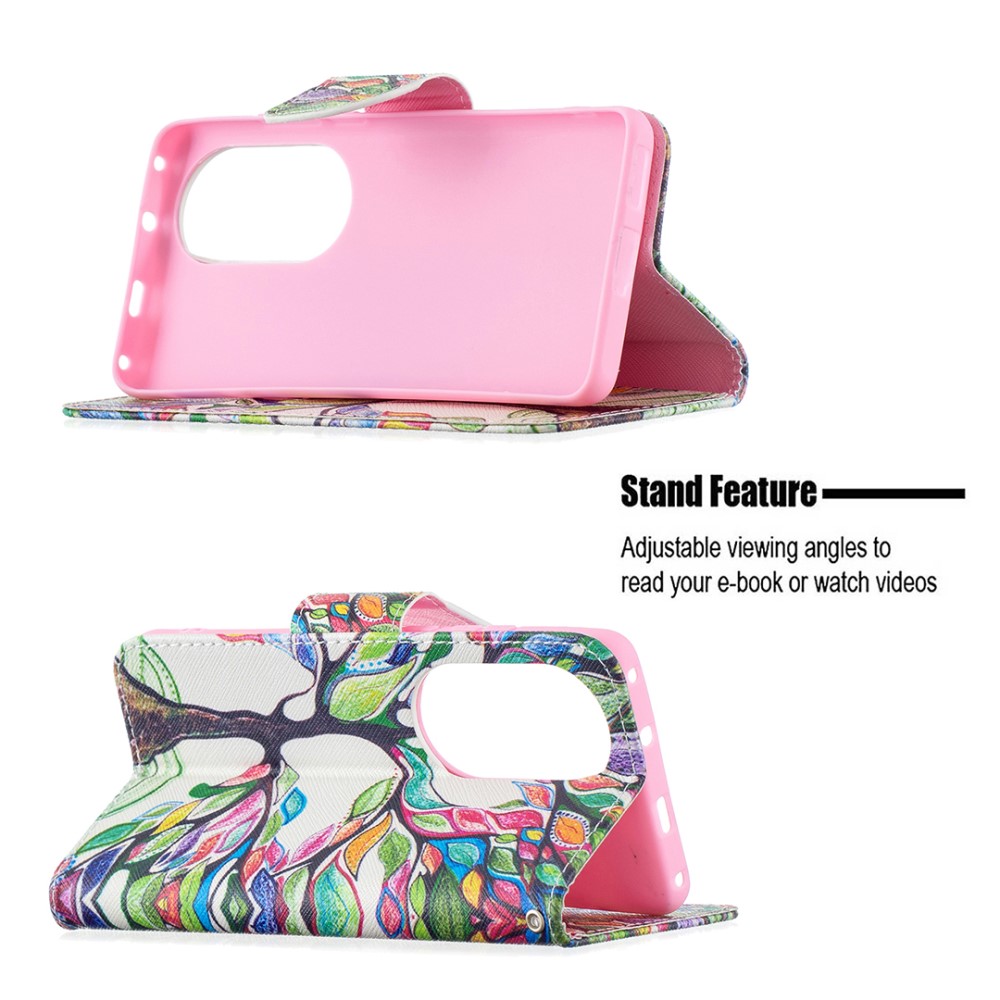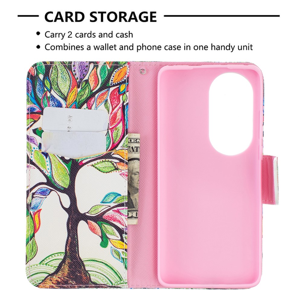 Θήκη Huawei P50 Pro OEM Colorized Tree με βάση στήριξης, υποδοχές καρτών και μαγνητικό κούμπωμα Flip Wallet από συνθετικό δέρμα και TPU
