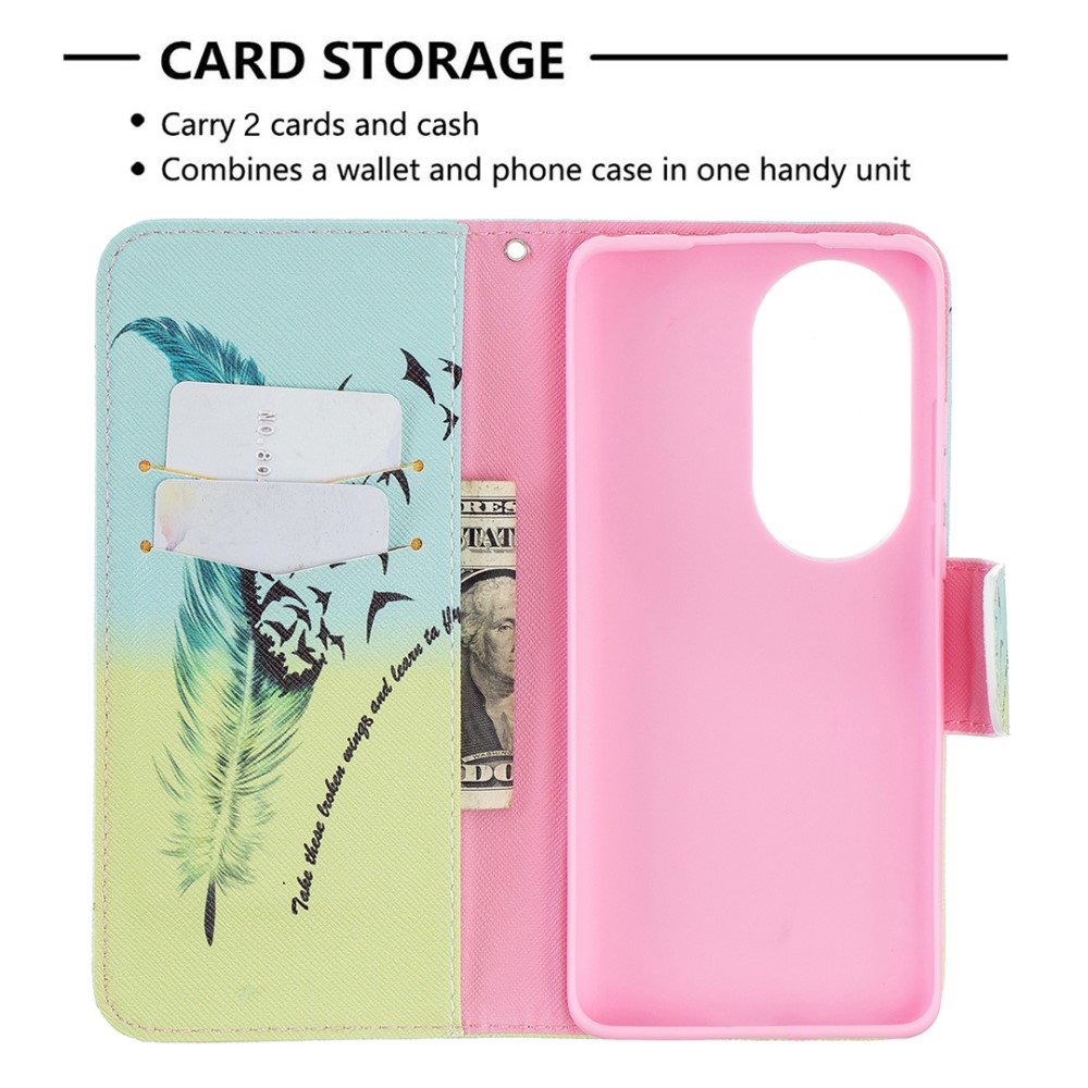 Θήκη Huawei P50 Pro OEM Feather & Birds με βάση στήριξης, υποδοχές καρτών και μαγνητικό κούμπωμα Flip Wallet από συνθετικό δέρμα και TPU