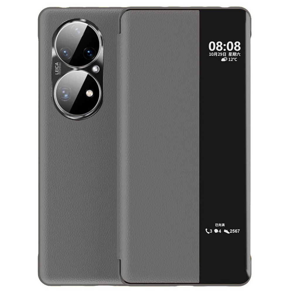 Θήκη Huawei P50 Pro OEM Half Mirror View Stand Cover v5 με μαγνητικό κούμπωμα από συνθετικό δέρμα γκρι