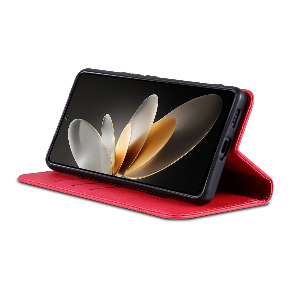 Θήκη Huawei Pura 70 AZNS Litchi Retro V4 Texture Leather με βάση στήριξης, υποδοχές καρτών και μαγνητικό κούμπωμα κόκκινο